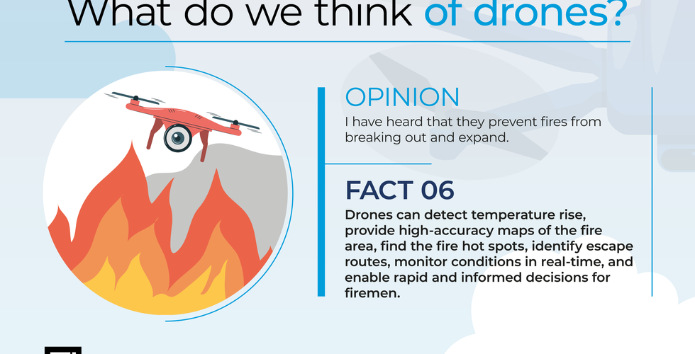 The general sentiment from all the people we talked to is that society as a whole is not aware of the potential of drones and still believes that they are mostly mini cameras flying above. “The truth is that because drones have been developed only in the last 15 years, the younger generations know they exist, but I am not sure how many of them are aware of their extensive uses. The older generations, due to their lack of technological matters, are not aware of their uses, they may think it's mainly for making videos (as many youngsters believe so)….the younger ones, those who engage more with drones, will learn all the applications, whereas those who don't engage, will continue to think it's just for making videos”, says Giorgos. An employee in the Egaleo Municipality, Giannis, suggests that there should be some kind of awareness campaign. He adds, “As a Municipality, we have run the "First Respond" project, where we showed how the first action of a drone should be organised in an emergency case, how it can arrange the intervention of the rescuers, the means of rescue, etc., and we promoted it through social media”. Giorgos has the same idea and adds that maybe something bad has to happen so citizens can understand how a drone can help society. “For example, in the case of a fire, where someone watches on the news that a drone throws water or manages to measure air temperature by signalling the fire brigade, and thus realise that the drone acted preemptively, only then will they change their mind about them. There must be an action, a campaign to inform people and not wait for the bad thing to happen to convince them”, he notes.